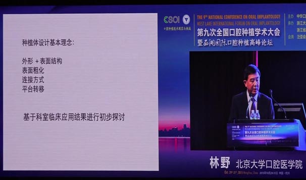 會(huì)議期間國(guó)內(nèi)知名口腔專家針對(duì)當(dāng)前口腔種植領(lǐng)域熱點(diǎn)進(jìn)行了精彩的學(xué)術(shù)演講。其中北京大學(xué)口腔醫(yī)學(xué)院林野教授的演講主題是“種植體設(shè)計(jì)及臨床意義”。